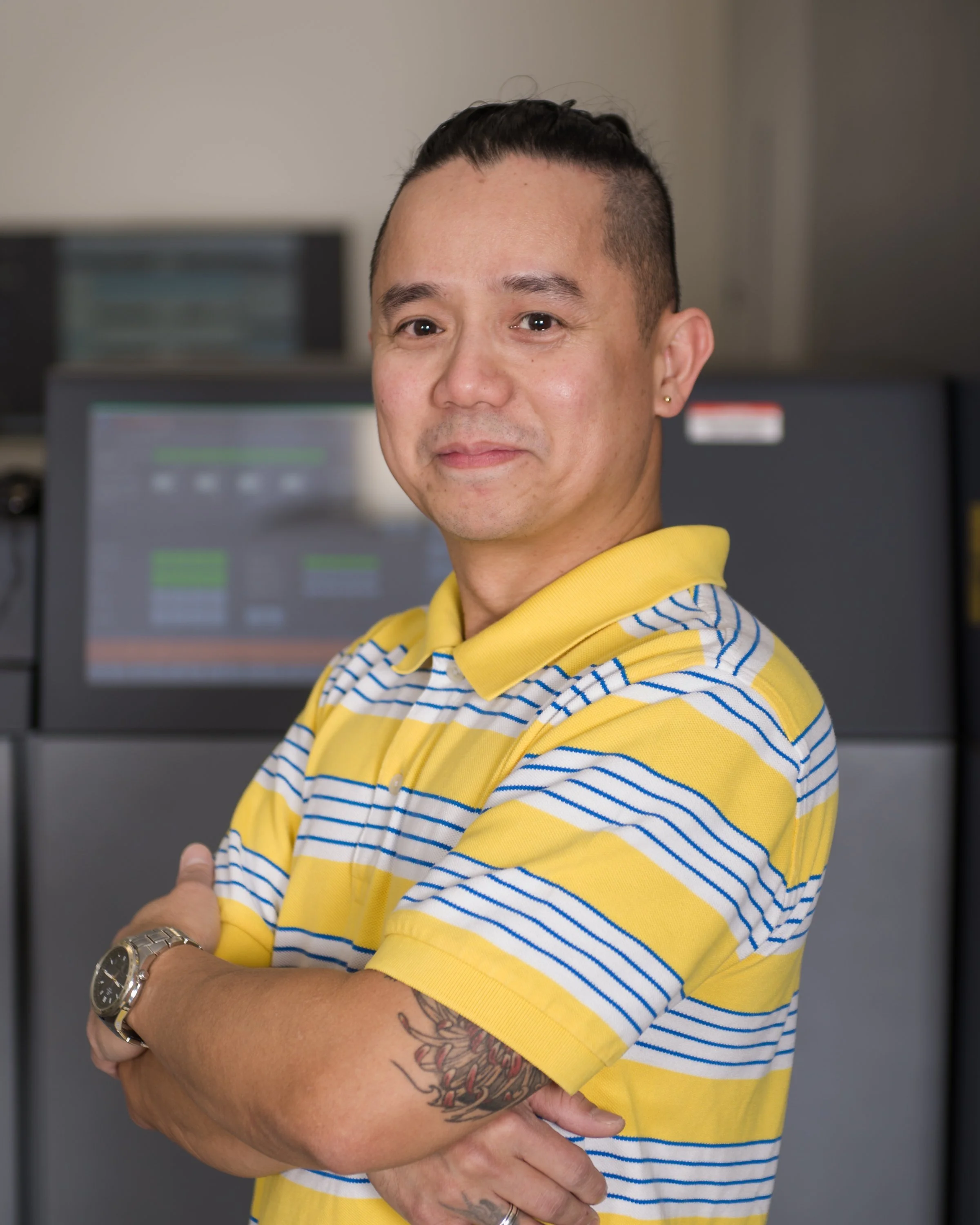 In his spare time, he likes playing basketball which was his go-to sport growing up in Manila. He also enjoys paintballing, billiards and trail biking. When those hands aren’t detecting a specific paper stock by touch alone, he uses them to play guitar and currently plays bass with his friends on the weekends.